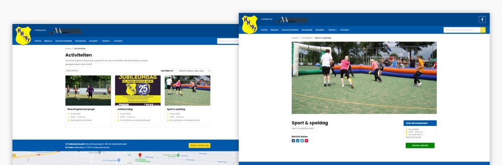 Sportverenigingen organiseren vaak evenementen. De evenementen bekend maken bij het grote publiek gaat vaak via een praatje hier en een oproep daar. Door de evenementen uit te lichten op de website heeft iedereen toegang tot de informatie die daarbij hoort. Voeg de tijd, locatie, naam en een foto van het evenement toe.